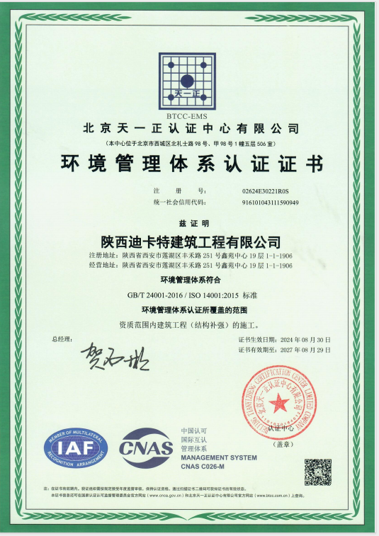 環(huán)境管理體系認證證書