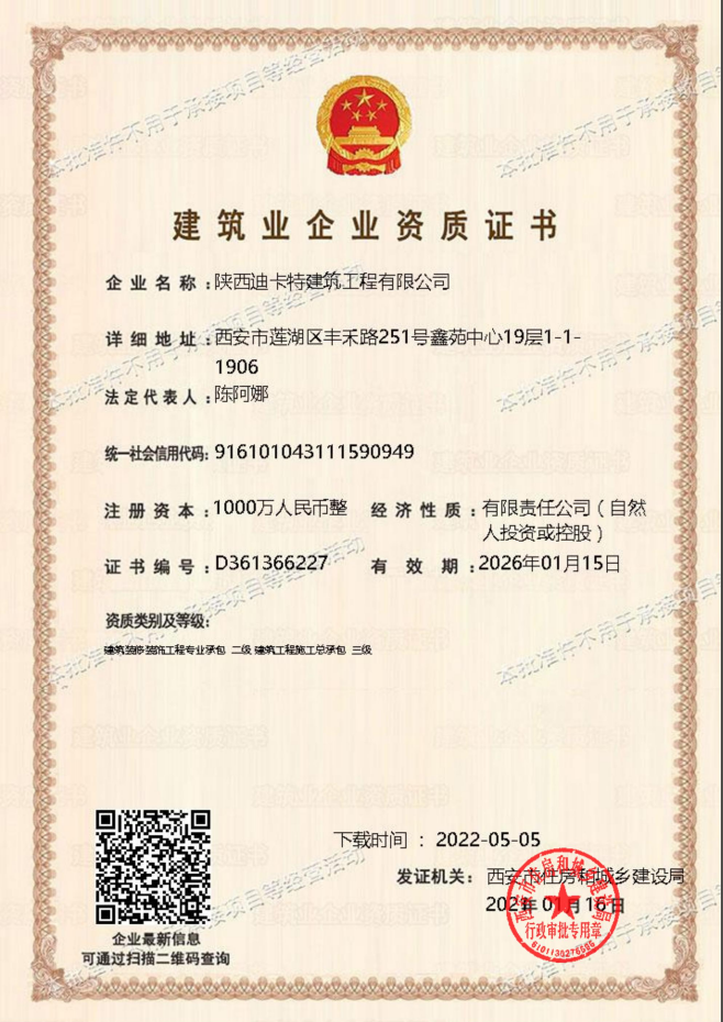 建筑企業(yè)資質(zhì)證書